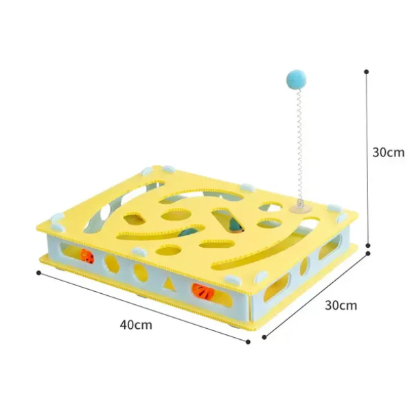 Keep your cat entertained, active, and mentally stimulated with the Pet Puzzle Box—a fun and interactive way to relieve boredom and satisfy a cat's natural hunting instinct. Simply toss the ball in and watch your cat try to claw, tap, and chase it through the maze-like openings!